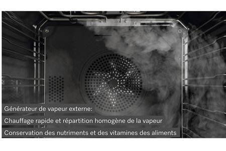 Avec le procédé éprouvé de génération vapeur Mono Steam, la vapeur pénètre dans l’enceinte de cuisson de votre appareil Miele par un orifice. Elle se répartit rapidement et uniformément tout autour de vos aliments et assure une cuisson douce pour des résultats optimaux.