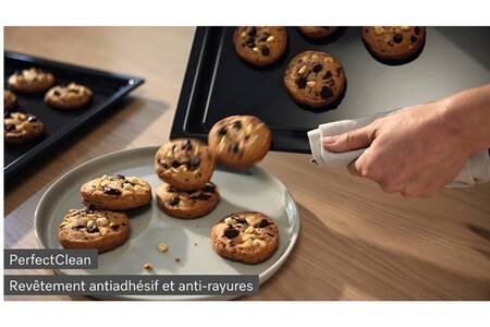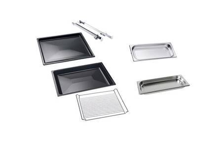 Livré avec 1 grille et 2 plats PerfectClean, 1 paire de rails télescopiques, 1 plat vapeur perforé, 1 plat vapeur non perforé.