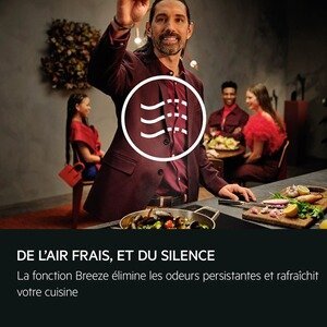 La fonction Breeze rafraîchit l’air de votre cuisine en douceur après la cuisson. Elle élimine silencieusement les odeurs résiduelles, vous permettant de savourer vos repas dans une ambiance propre et apaisante, sans intervention manuelle.